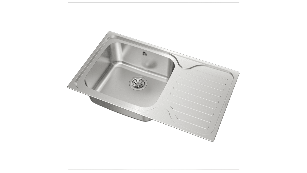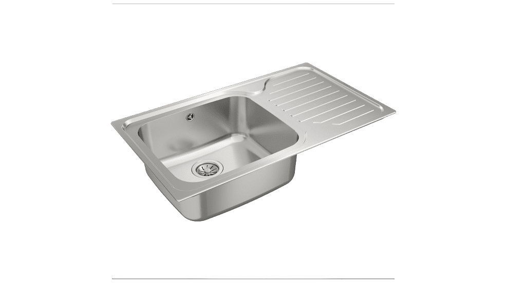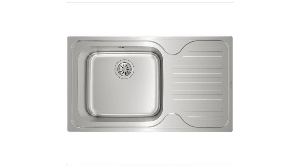 Иноксова мивка за вграждане, гладка, десен отцедник, за шкаф със светъл отвор 60 см