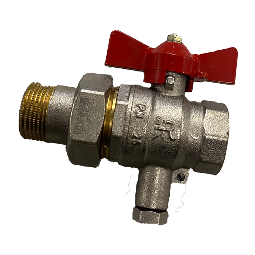 Водопроводен сферичен кран с мъжка с холендър – женска резба и извод за датчик