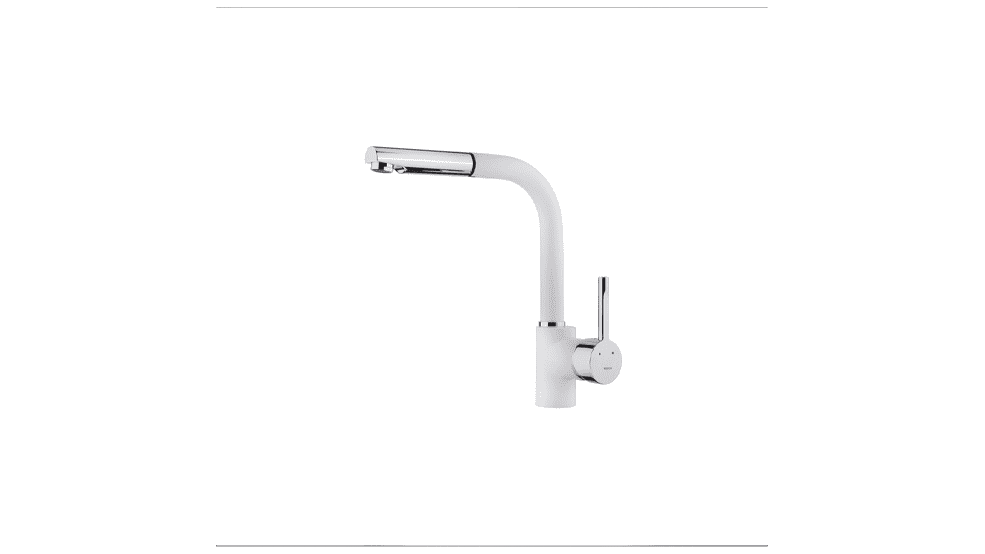 Кухненски смесител, изтеглящ се душ, въртящ се чучур, бял