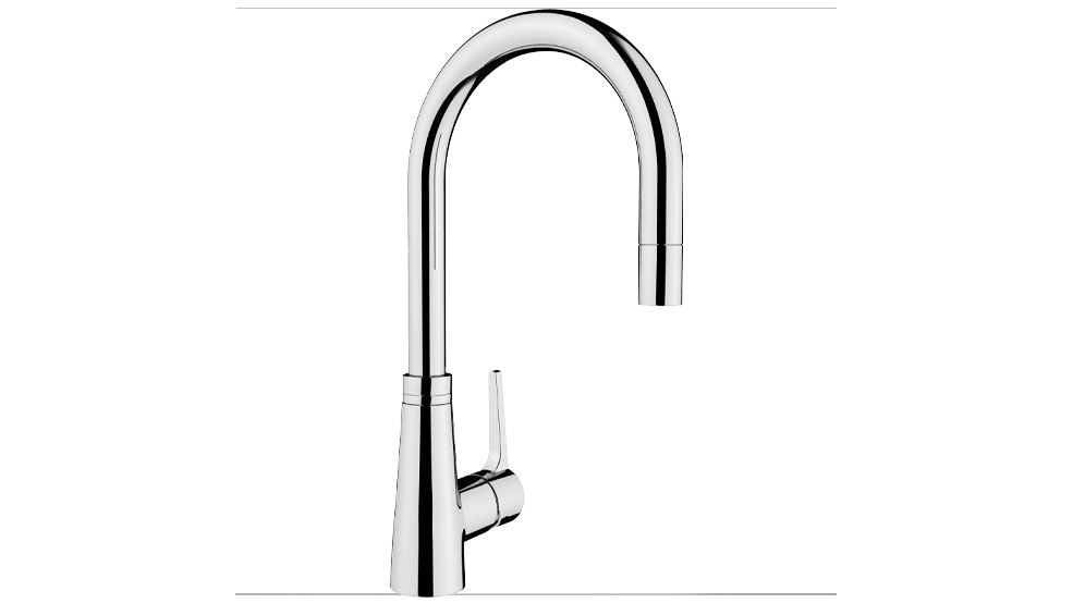Кухненски смесител за монтаж под прозорец, въртящ и издърпващ се чучур, хром