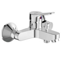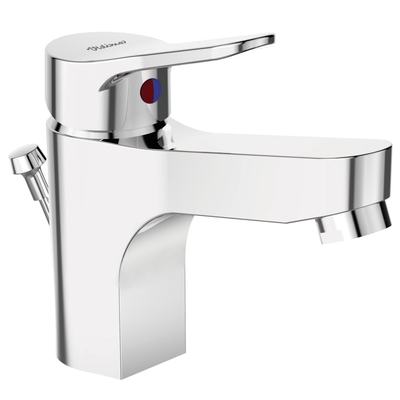 35 mm керамичен затварящ механизъм с ограничител на топла вода,Месингово лято тяло,Метална ръкохватка с индикатор за топла и студена вода на капачката,Гъвкави връзки G3/8″
