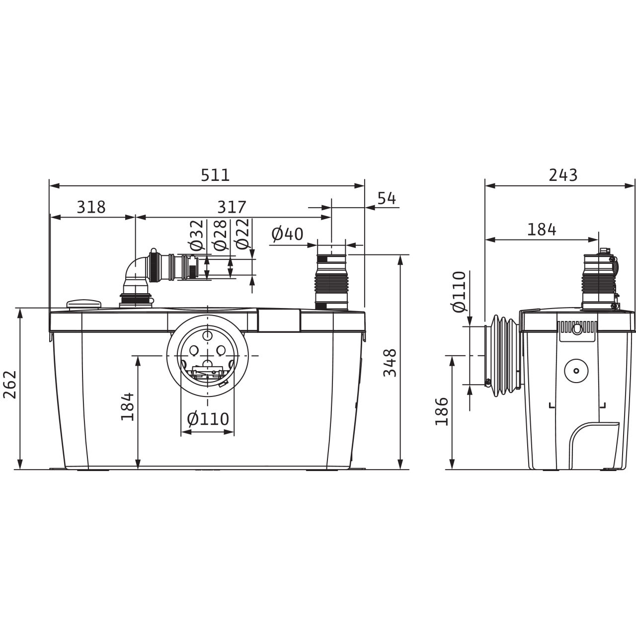 Готова за включване, безшумна и автоматична помпена система за отпадни води съгласно EN 12050-3, с всички необходими превключващи и управляващи устройства. Използвана обикновено, когато основният канален тръбопровод се намира над нивото на събиране на отпадните води или няма възможност за директно включване към него.